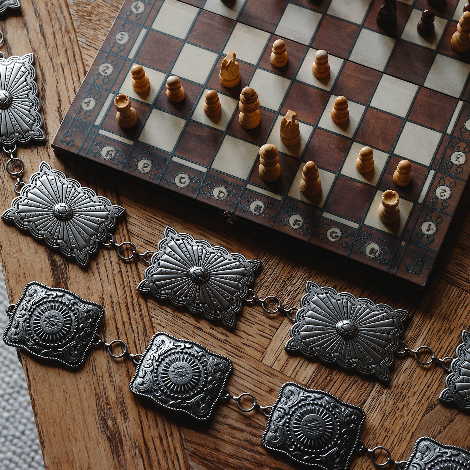 Salem Rectangle Southwestern Concho Chain Belt